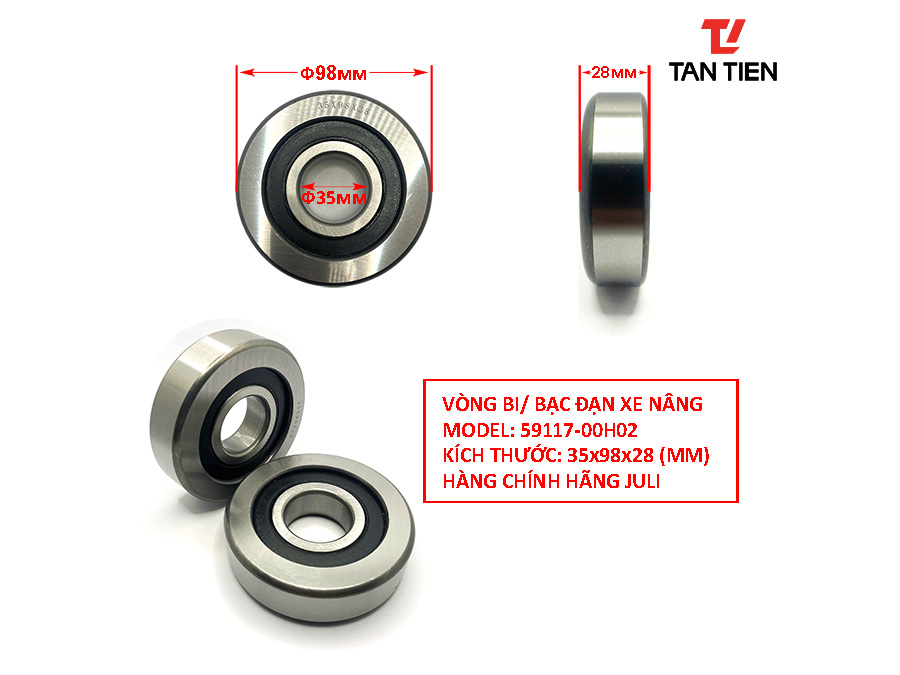 Bạc đạn xe nâng 59117-00H02 là mã vòng bi quan trọng được sử dụng phổ biến trên các dòng xe nâng Nissan tải trọng 2 – 3.5 tấn. Đây là chi tiết chịu lực trực tiếp, giúp hệ thống nâng – hạ vận hành trơn tru, ổn định và bền bỉ trong môi trường làm việc cường độ cao.