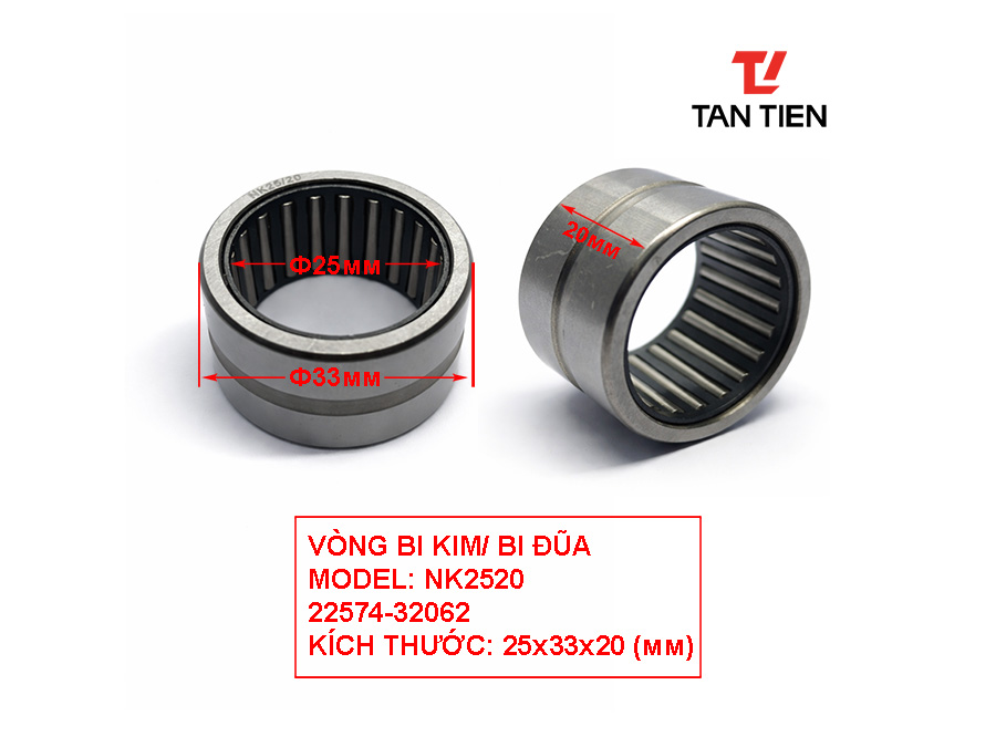 Vòng bi kim NK2520 đúng mã 22574-32062 là lựa chọn thay thế chính xác cho xe nâng TCM tải trọng nhỏ và trung bình.