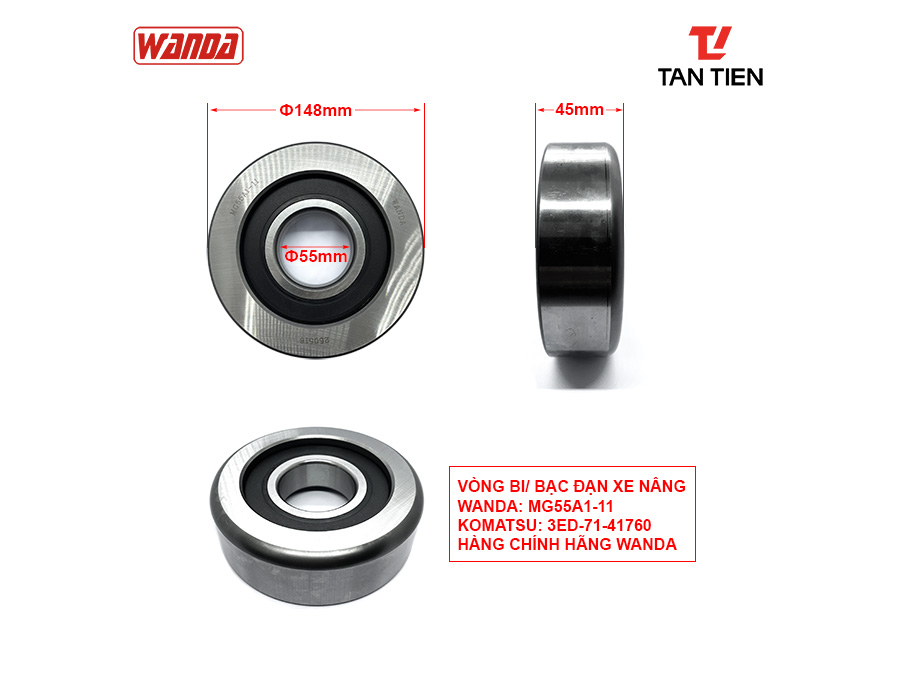 Vòng bi xe nâng MG55A1-11 – Hàng chính hãng Wanda cho xe nâng Komatsu 4–5 tấn